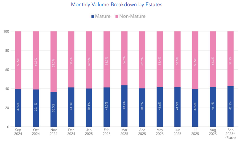 Greater than 57% of transactions got here from Non-Mature estates, highlighting how cities akin to Sengkang, Woodlands, and Jurong East proceed to soak up a good portion of market exercise. In the meantime, Mature estates accounted for 42.5%, reflecting restricted provide however regular curiosity from patrons keen to pay premiums for proximity to facilities and established neighbourhoods.